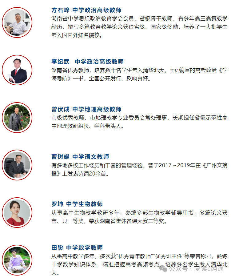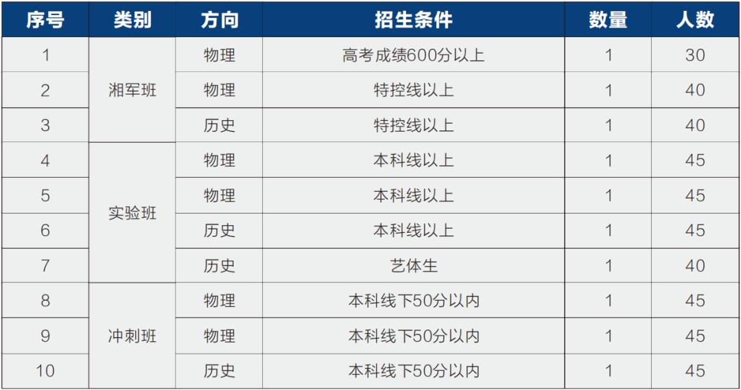 高复部设有湘军班、实验班和冲刺班,根据学生的高考成绩进行分层教学。针对学生的弱势和优势学科,合理搭配成立学习兴趣小组,促进互帮互助,共同进步。导师精心提供个性化指导,最大限度地做到因材施教,充分发掘学生的潜能,努力确保每一名学生在学习上扬长补短,在高考中取得重大突破。