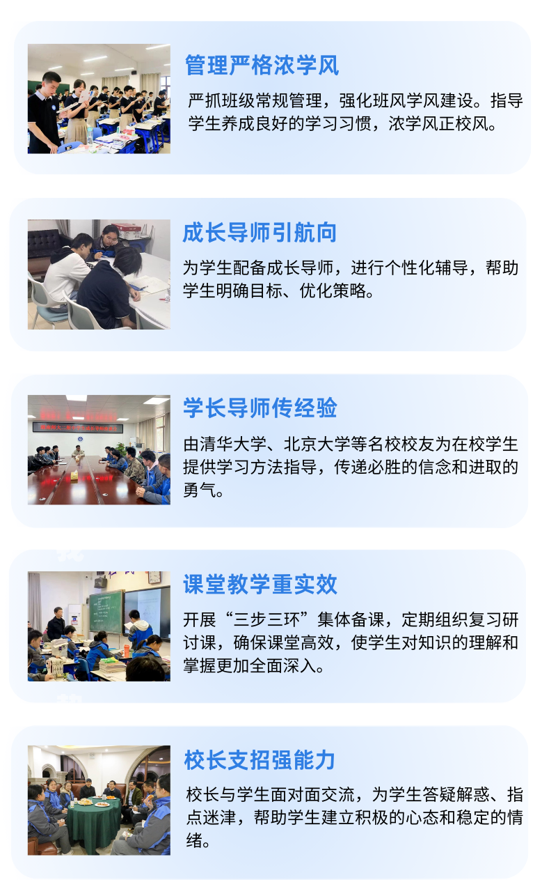 长沙博纳二附中(原湖南师大二附中)复读部创建于2017年,师资力量雄厚,办学条件优越,着力打造了管理精细、目标精准、备考精确、学业精进的精品复读部。自创建以来复读部成绩卓越,学生提分显著,5000余名学生在此圆梦。