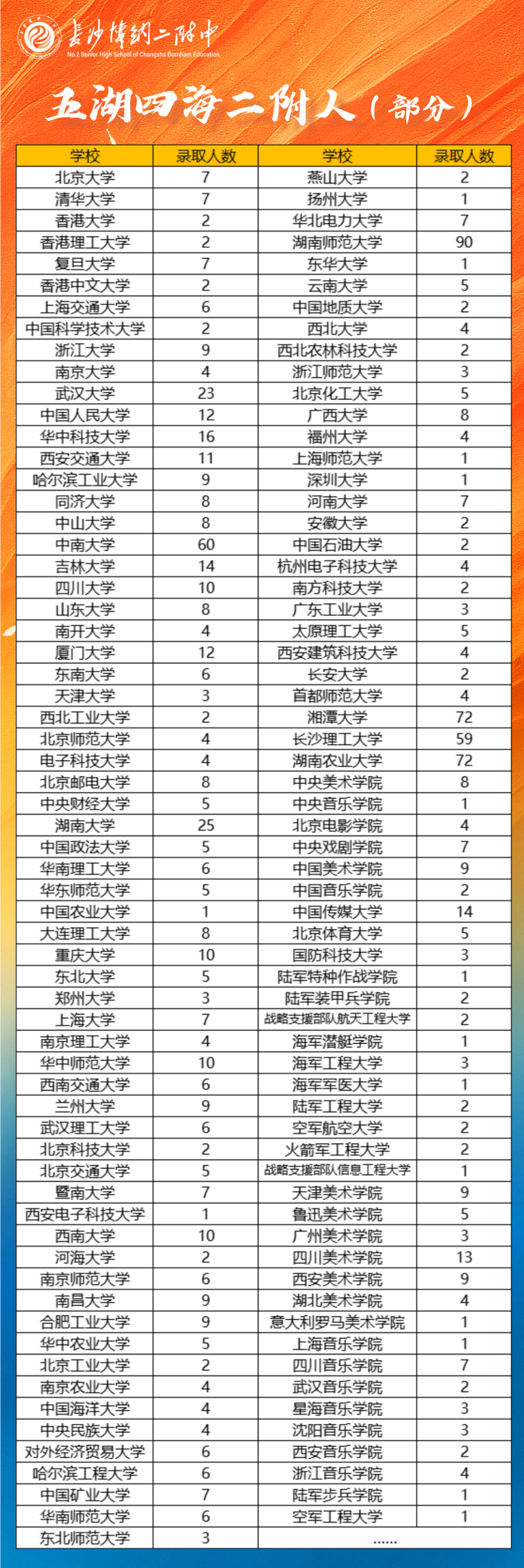 学校先后有14名学生考入清华大学、北京大学(其中2023年5人被清华大学录取),3人录取为空军、海军飞行员,1000余名学子录取到复旦大学、上海交通大学、浙江大学等985、211、双一流高校。