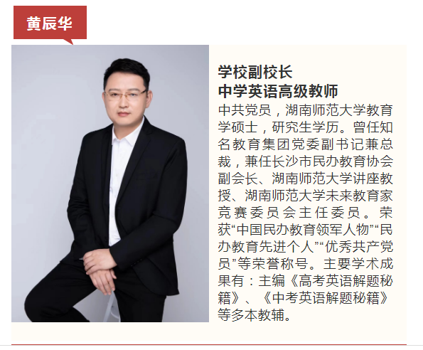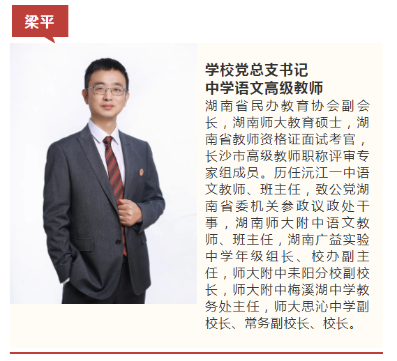 学校拥有一支享誉三湘、理念先进、作风过硬、勇于担当的优秀管理团队,致力于指导学校顶层设计,把握办学方向,为学校的整体发展和治理把脉献策,以高标准办学定位引领学校高品位发展,为建设一流民办高中的发展战略目标提供强大的智力支持。