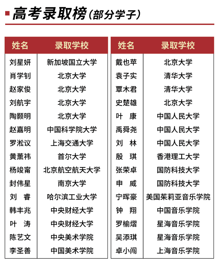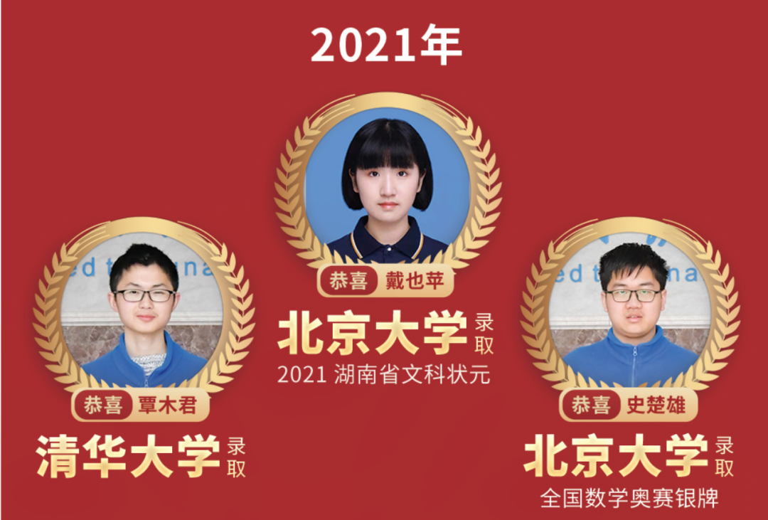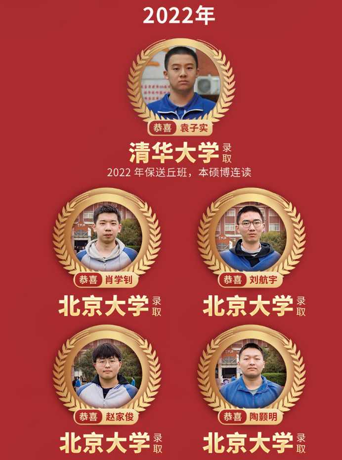 2021年,3名同学被清华北大录取。2022年,学校再创佳绩,5名同学被清华、北大录取。