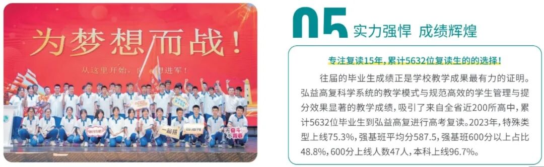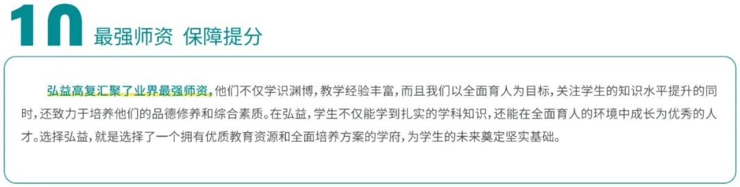 此外,我校每年都汇聚了行业专家和附中名师的智慧,精心编撰出版高复专用的内部教材,为弘益学子在高考中实现跨越式提升提供了坚实的后。我们坚信,在弘益的一年复读时光,将为同学们带来终身的受益与成长。