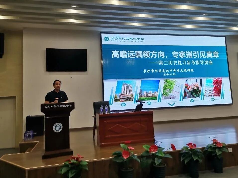 长沙市弘益高级中学,原湖南广益实验中学高中部,位于长沙县东九路238号,占地120余亩,总投资4.5亿。学校教学设施先进,配备了现代化多网合一的智慧教育终端系统,以及省一类标准的实验综合大楼、体育馆和功能房。学校师资雄厚,教研成果颇丰,拥有享受国务院特殊津贴专家1人,国家“万人计划”教学名师1人,特级教师5人,正高级教师5人,高级教师40余人,一级教师70余人。具备研究生学历的一线教师,有120余人。现有名师工作室4个,荣获国家级成果奖53项、省级成果奖90项、市级成果奖110余项。学校秉承“公、朴、仁、毅”的校训,遵循“让生命温暖而幸福,让每个生命向光而行”的办学理念,利用丰富多彩的学科及社团活动,践行“立德树人”的教育宗旨。培养“素质全面,个性优良”的弘益学子。
