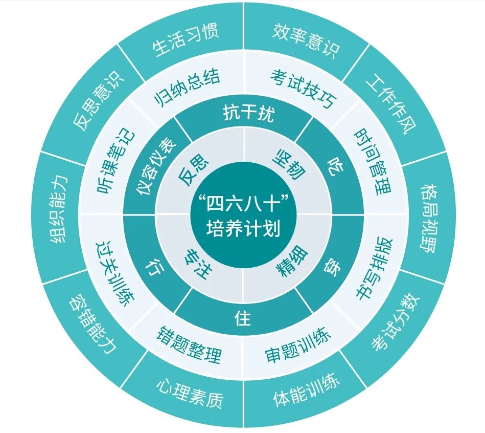 在弘益,复读并非是对高三学习的简单重复和知识的机械叠加,而是致力于学生思维能力、坚韧意志、心理素质、学习习惯、身体素质、知识体系和应试能力的全方位升华。经十五年的探索与积累,我们成功独创了包含成绩提升系统、学生成长系统、升学指导系统的“弘益高复教育教学模式”,通过“四六八十”培养计划的整体设计,可以全面提升复读生的学术素养和意志品质,为他们的学业提升和终生发展提供有力的保障。